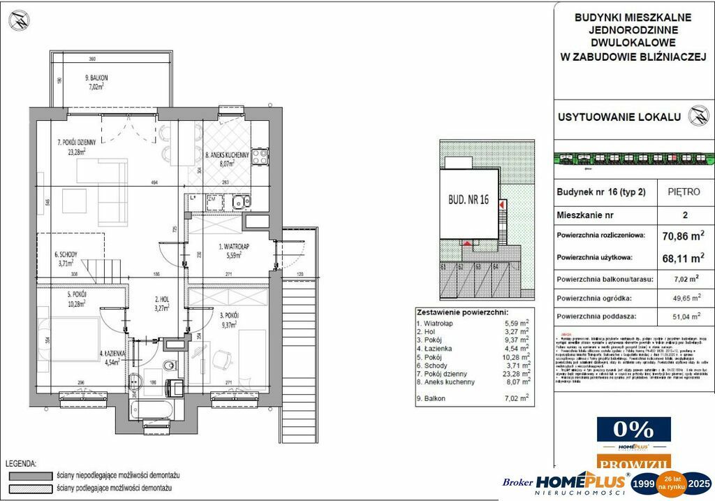 PODDASZE: 51,04 m ) - balkon: 7,02 m, ogródek: 49,65 m