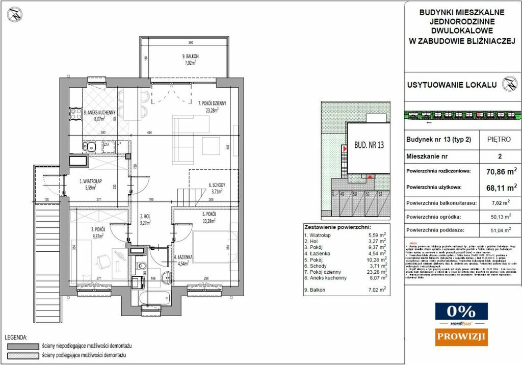 PODDASZE: 51,04 m ) - balkon: 7,02 m, ogródek: 50,13 m