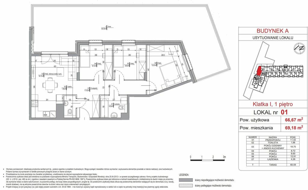 Budynek A, klatka I, lokal nr 01 , taras: 66,33 m