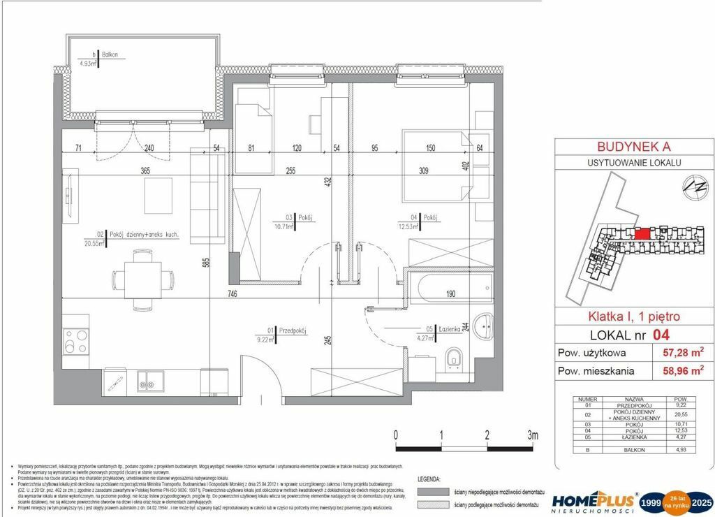 Budynek A, klatka I, lokal nr 04 , balkon: 4,93 m