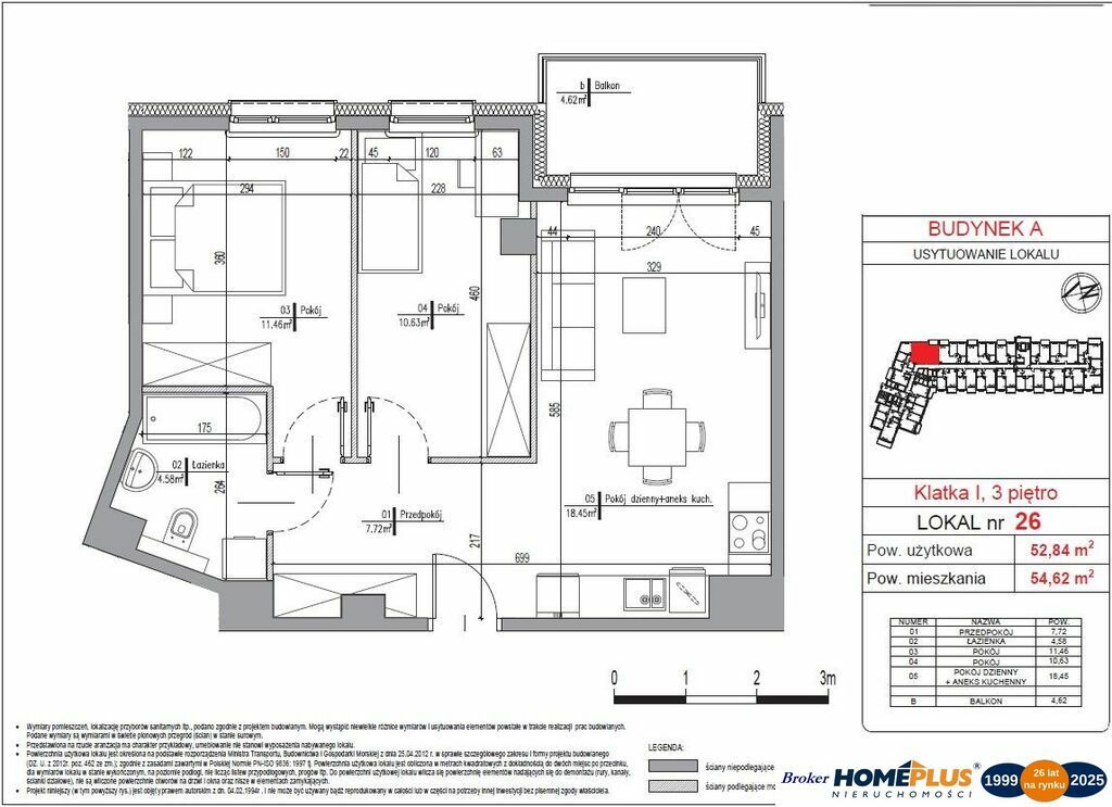 Budynek A, klatka I, lokal nr 26 , balkon: 4,62 m