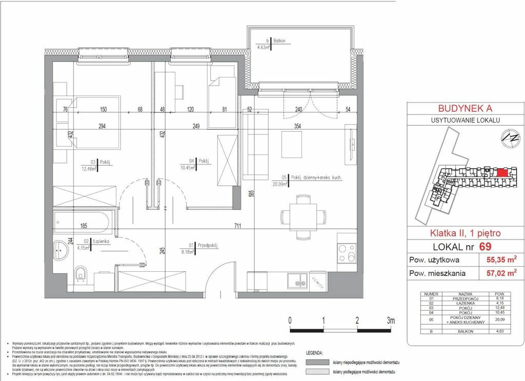 Budynek A, klatka II, lokal nr 69 , balkon: 4,63 m