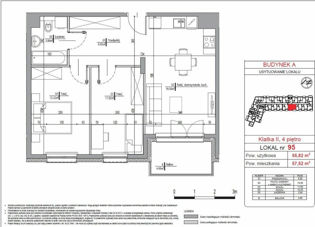 Budynek A, klatka II, lokal nr 95 , balkon: 4,66 m