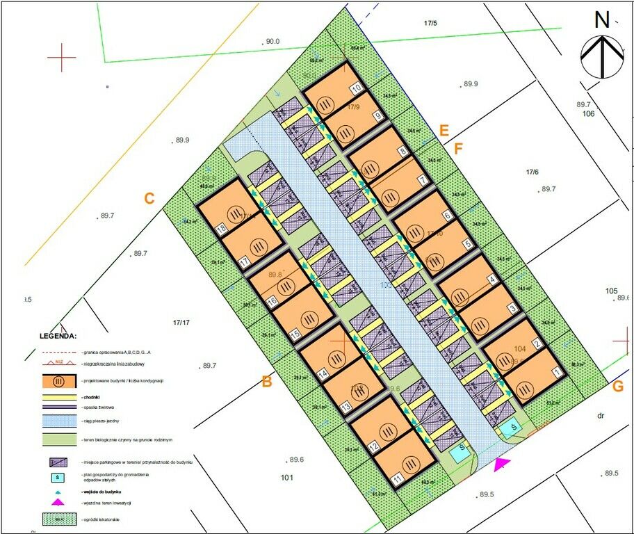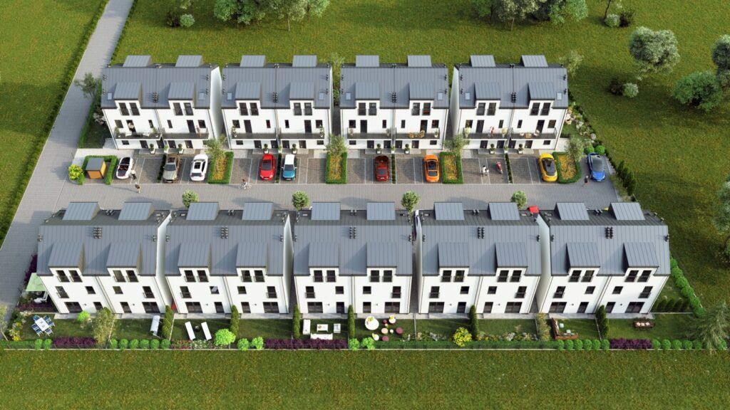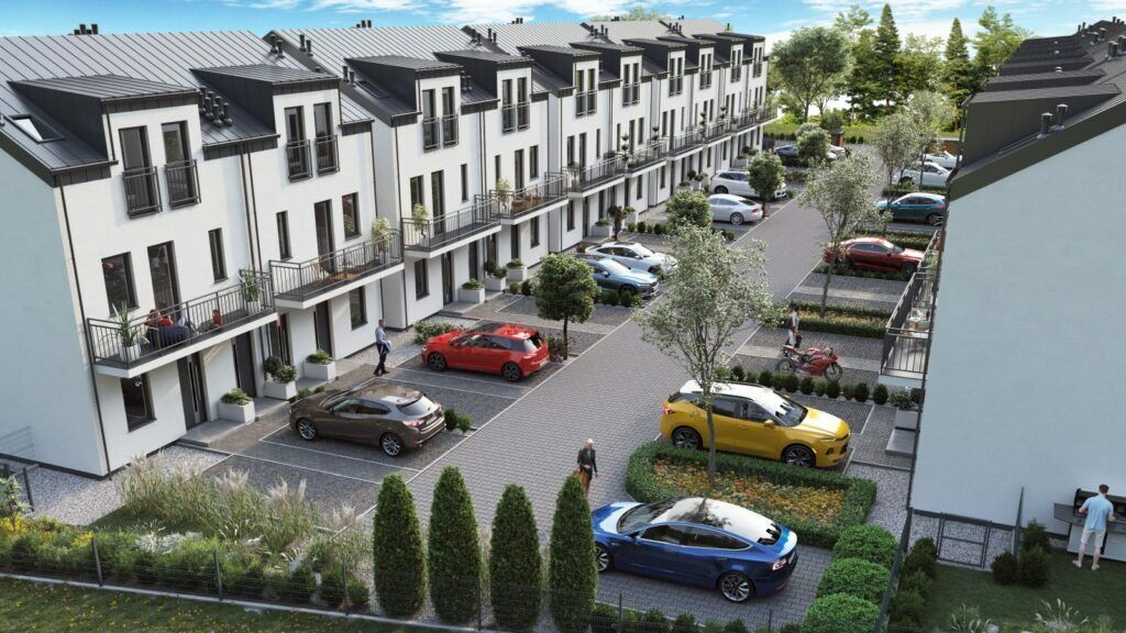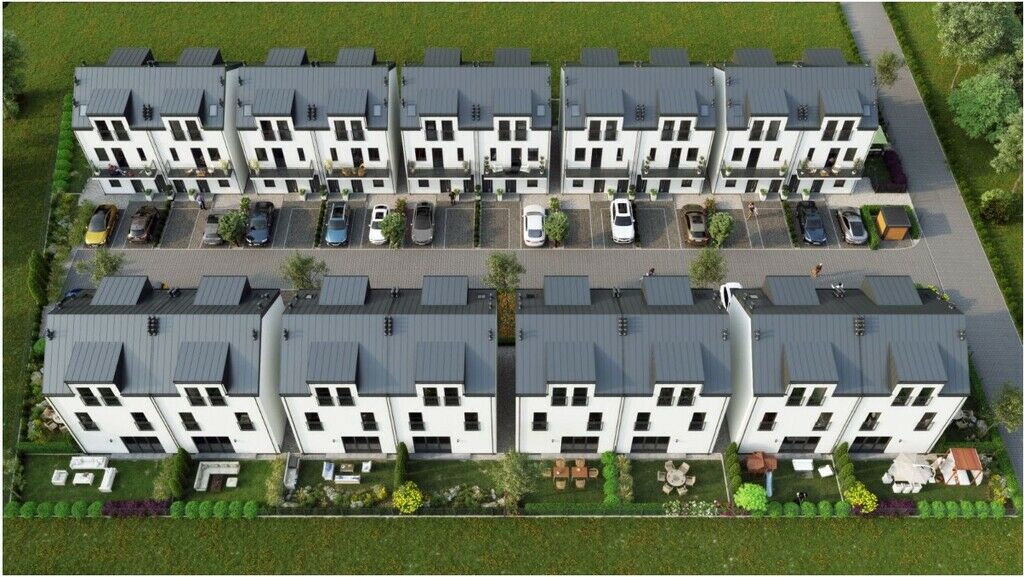 Kompleks 36 dwupoziomowych lokali w zabudowie bliźniaczej.