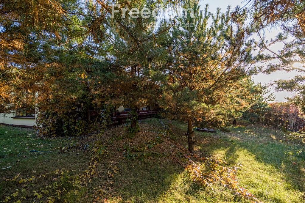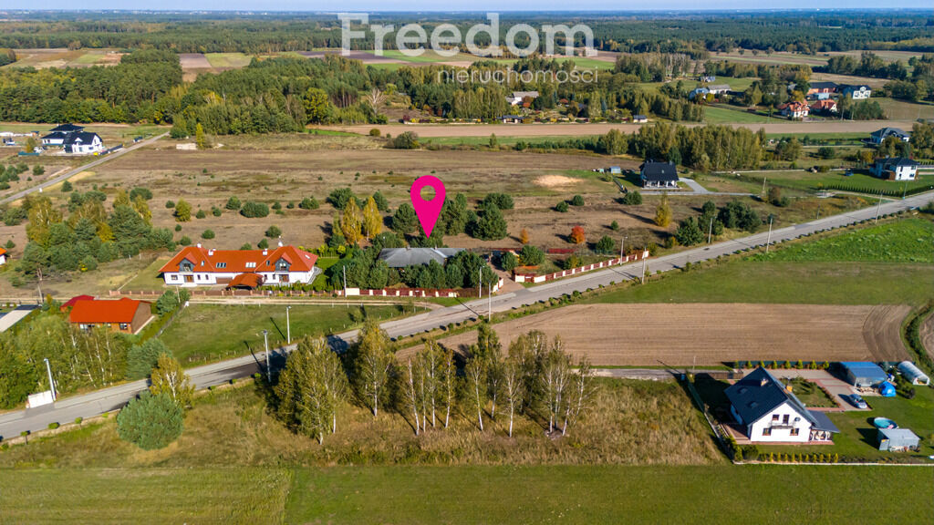 działce o pow. 1767 m², otoczonej młodymi sosnami i gęstą łąką